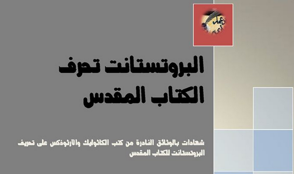 بسم الله الرحمن الرحيم البروتستانت تُحرف الكتاب المقدس| إعداد: أبو عمَّار الأثري شهادات بالوثائق النادرة من كتب الكاثوليك والأرثوذكس "تعرض لأول مرة" على تحريف البروتستانت الكتاب المقدس "بالمراجع المصورة" للتحميل المقال كاملاً من المدونة:PDF ـــــــــ DOC من جوجل درايف: PDF ـــــــــ DOC من موقع الأرشيف: صفحة المقال ـــــ PDF ـــــــــ DOC روابط تحميل أخري تحميل الصورة المعروضة في المقال كاملة في ملف مضغوط هنا ـــ تصفح الصور هنا تحميل أهم الاقتباسات: DOC تحميل فهرس النصوص المذكورة في المقال مع مقارنتها بالترجمات الأخرى: DOC تحميل ملف الأغلفة والصور DOC صفحة جميع الملفات من جوجل درايف تعليق أستاذنا محمد شاهين على الاقتباسات في قناة الدعوة الإسلامية هنا: الجزء الأول هنا تفريغ التعليق: الجزء الأول صفحة المقال على مدونة الأثري هنا والحمد لله رب العالمين صورة الغلاف